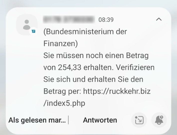 FALSCHE SMS DES FINANZMINISTERIUMS