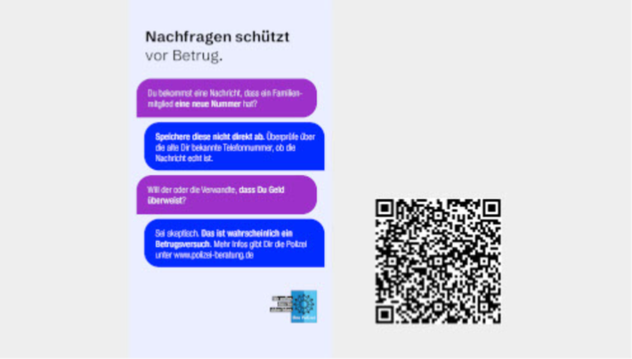 Und zwar nicht nur Oma und Opa, auch jüngere Menschen werden immer häufiger Opfer dieser Betrugsform. Gerade im vertrauten familiären Umfeld sollte der Tipp verbreitet werden, dass ein Nachfragen auf der altbekannten Nummer immer eine gute Möglichkeit ist, um einen möglichen Betrugsversuch auszuschließen.